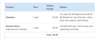 If you didn't already know, Yahoo! Small Business is offering to host your domain for $1.99/yr! Yes, you saw that right! it's $1.99/yr! Check their website if you're still not convinced. It's no gimmick! Oh wait, maybe it is. The CATCH: the recurring charges worth $34.95. But I figured that if I transferred domain hosts before the end of my term, I'll be fine. Google would probably be my best option then, as they only need $10/yr.