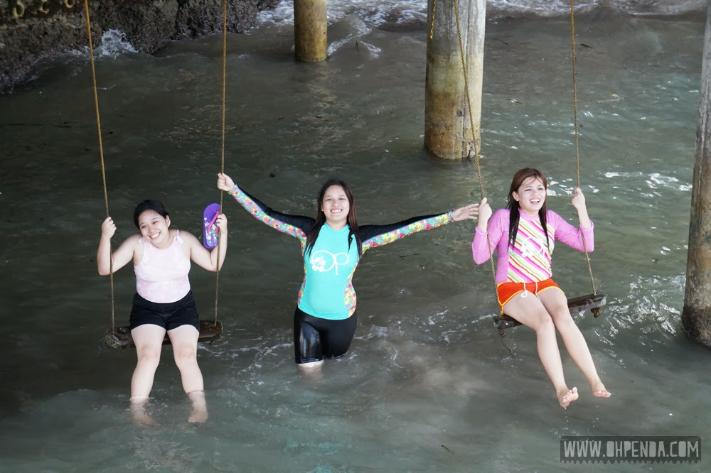 Early morning to 10am is the best time to go swimming. The water level is just right and you might not die of skin cancer under the scorching heat (but please, don't omit sunblock). I suggest you stay under the wooden bridge so you get more sand instead of rocks or wear slippers (crocs are the most preferable). My sisters and I scratched all our knees, we don't want you to experience the same.