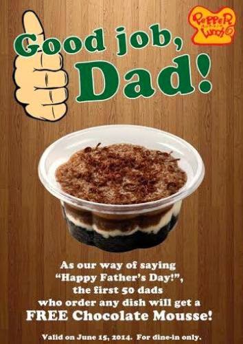 Father's Day Special - If you're a dad, drop by any Pepper Lunch store nationwide this June 15, 2014 to avail of a free chocolate mousse with any dish ordered.