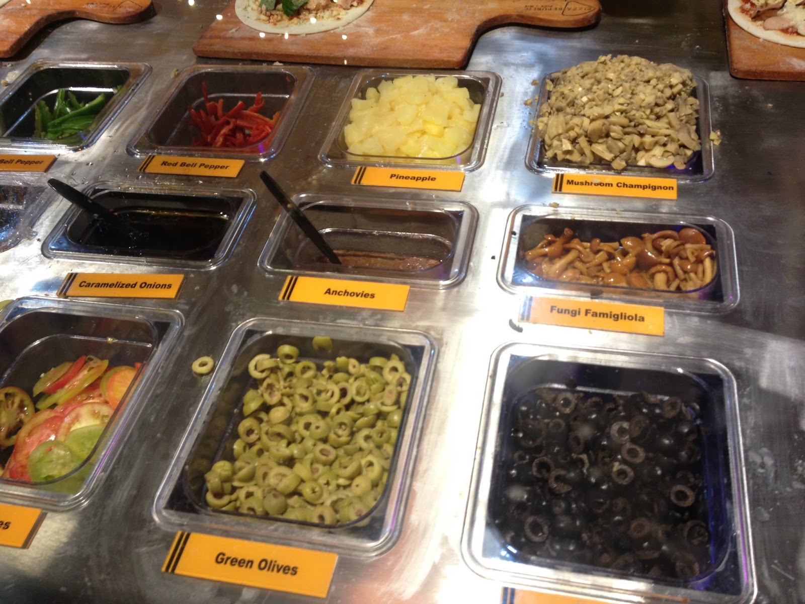 Pizza Republic by Giuseppe Genco is a pick and mix pizza parlor where you get play pizza chef and choose what gets to sit on top of your pizza. It seems to have sprouted from my next favorite Philippine city (after CDO of course), Cebu City. My sis who went to school in Cebu has been telling me wonderful stories about the place and and I think it's a stroke of genius that they've decided to put their baby in Cagayan de Oro. I've been doing research and I think this is their first branch outside Cebu.