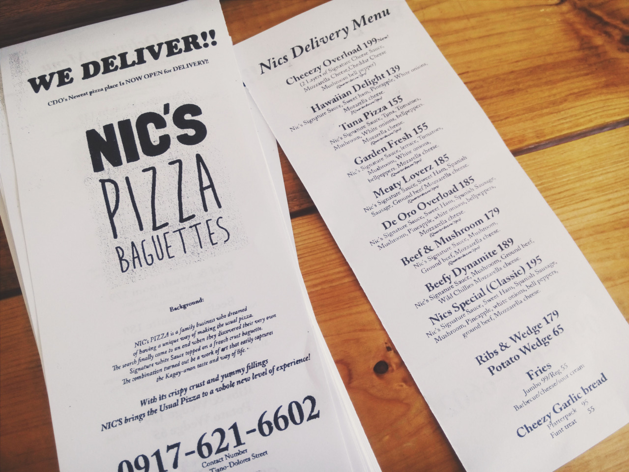 The pizza game has really started to blossom in Cagayan de Oro and what's even better is that locals are starting to innovate ways to dish out even more unique pizza concepts. Take Nic's Pizza Baguettes, for example. This boring french bread turns to an interesting snack when topped with meaty, cheesy goodness. And now they're offering door to door delivery anywhere in metro Cagayan de Oro! The kind owner of Nic's Pizza Baguettes sat us down to sample the delivery menu; read on to know which ones are my favorites!